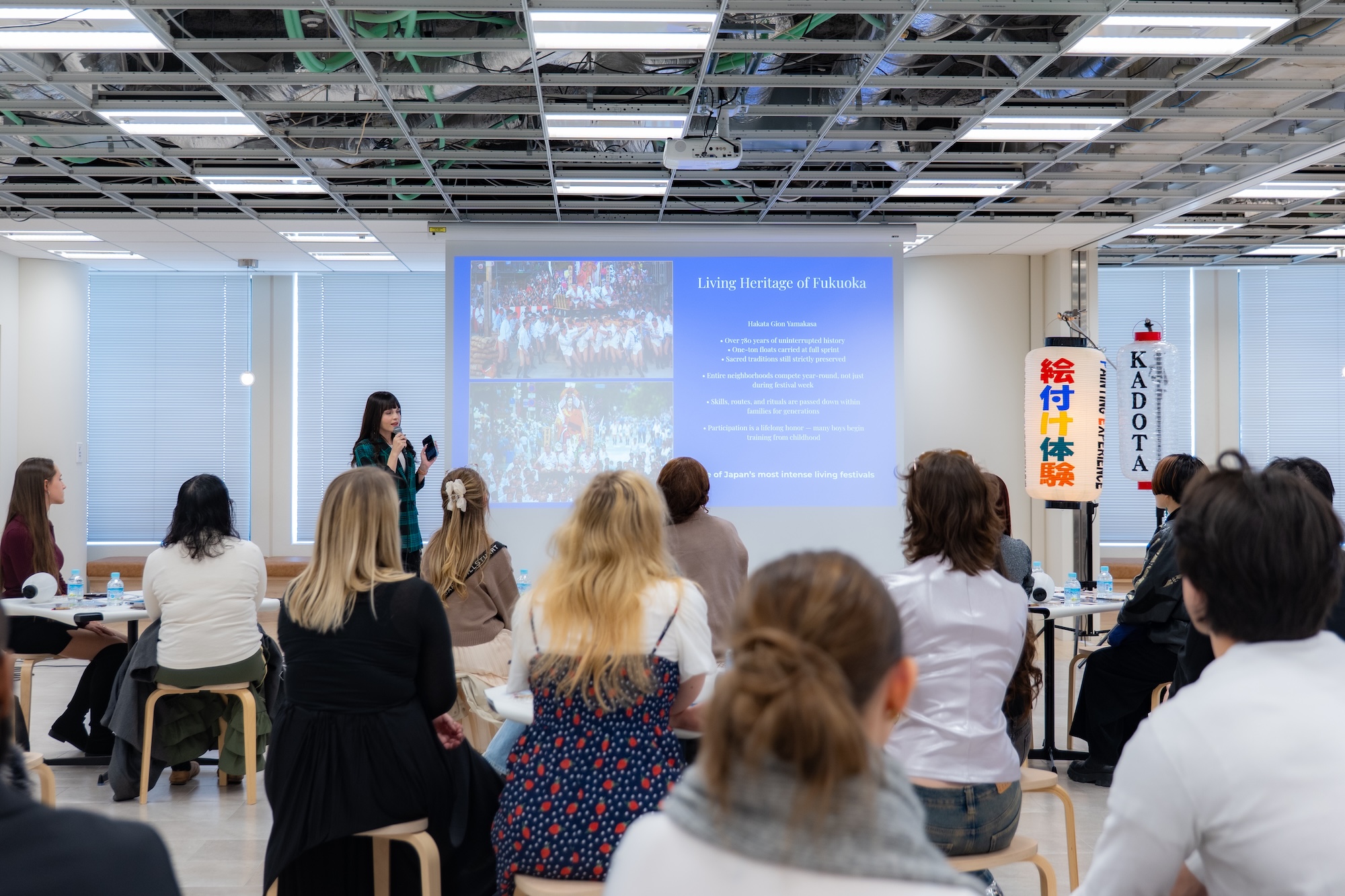 参加者は思い思いのデザインを提灯に描き、日本の伝統的なものづくりの温かみに直接触れる体験を楽しみました。完成した提灯は、福岡での思い出として持ち帰られました。