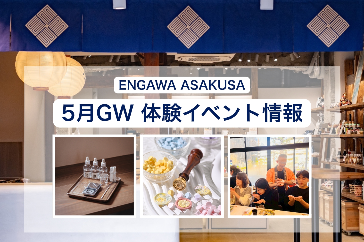 日本の美とアイデアを体験できる複合ストア「ENGAWA ASAKUSA(エンガワ アサクサ)」は、4月29日(水)〜5月6日(水)のゴールデンウィーク期間中に、全5種の体験イベントを店舗にて開催します。日常ではなかなか巡り合えない“調香体験”や“シーリングスタンプ”を制作するワークショップをはじめ、“日本酒”、“抹茶”をテーマとした体験会など、日本全国の事業者をお招きし、本格的な日本文化を体験できるイベントをご用意しました。