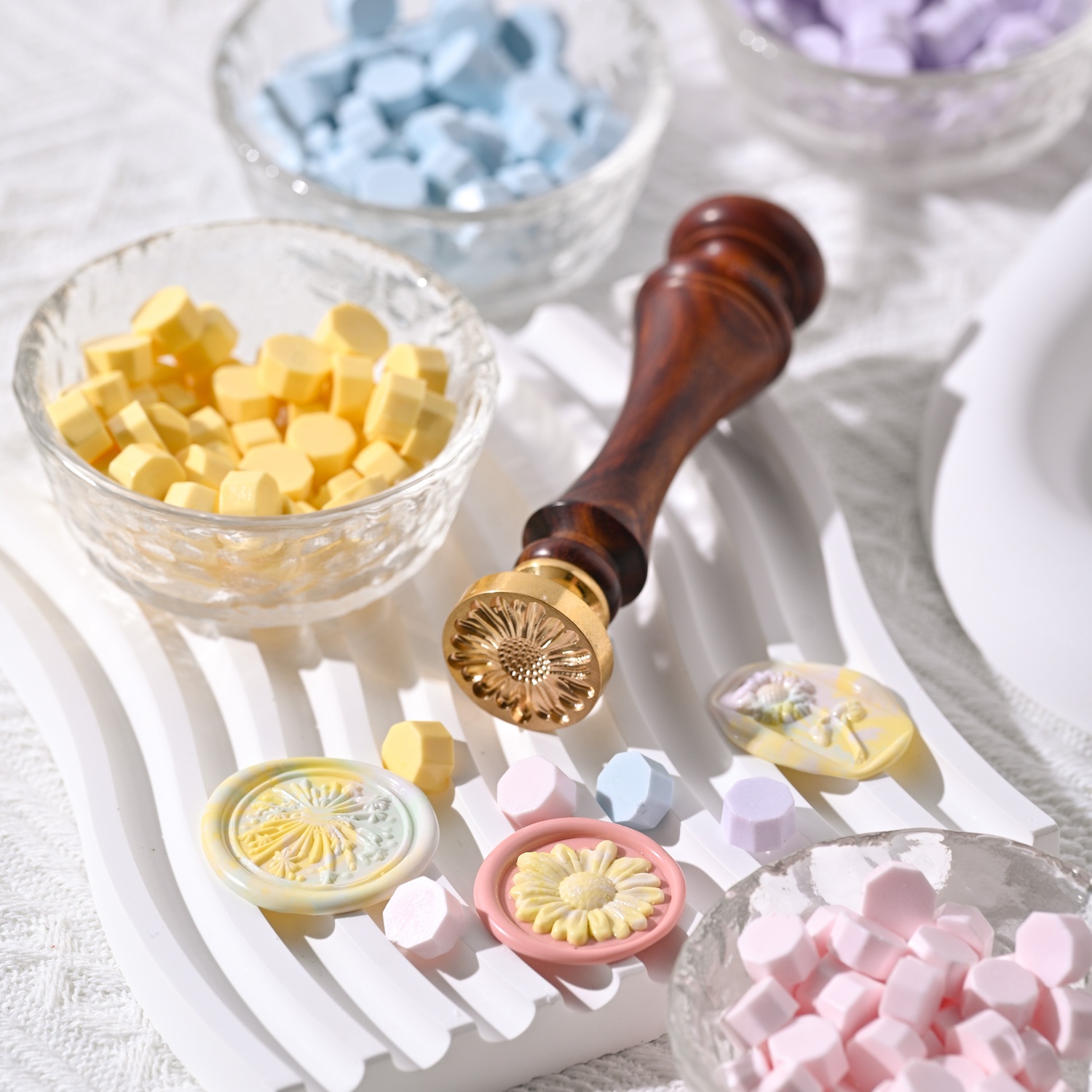 蝋を垂らして封をする“シーリングスタンプ”をオリジナルカラーで制作します。